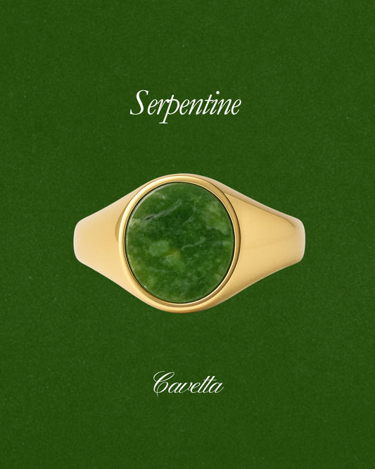 Whether you’re the only person to pair Carnelian with 14ct white gold or Serpentine with platinum, your ring will be the only one of its kind, made specifically for you and never repeated.