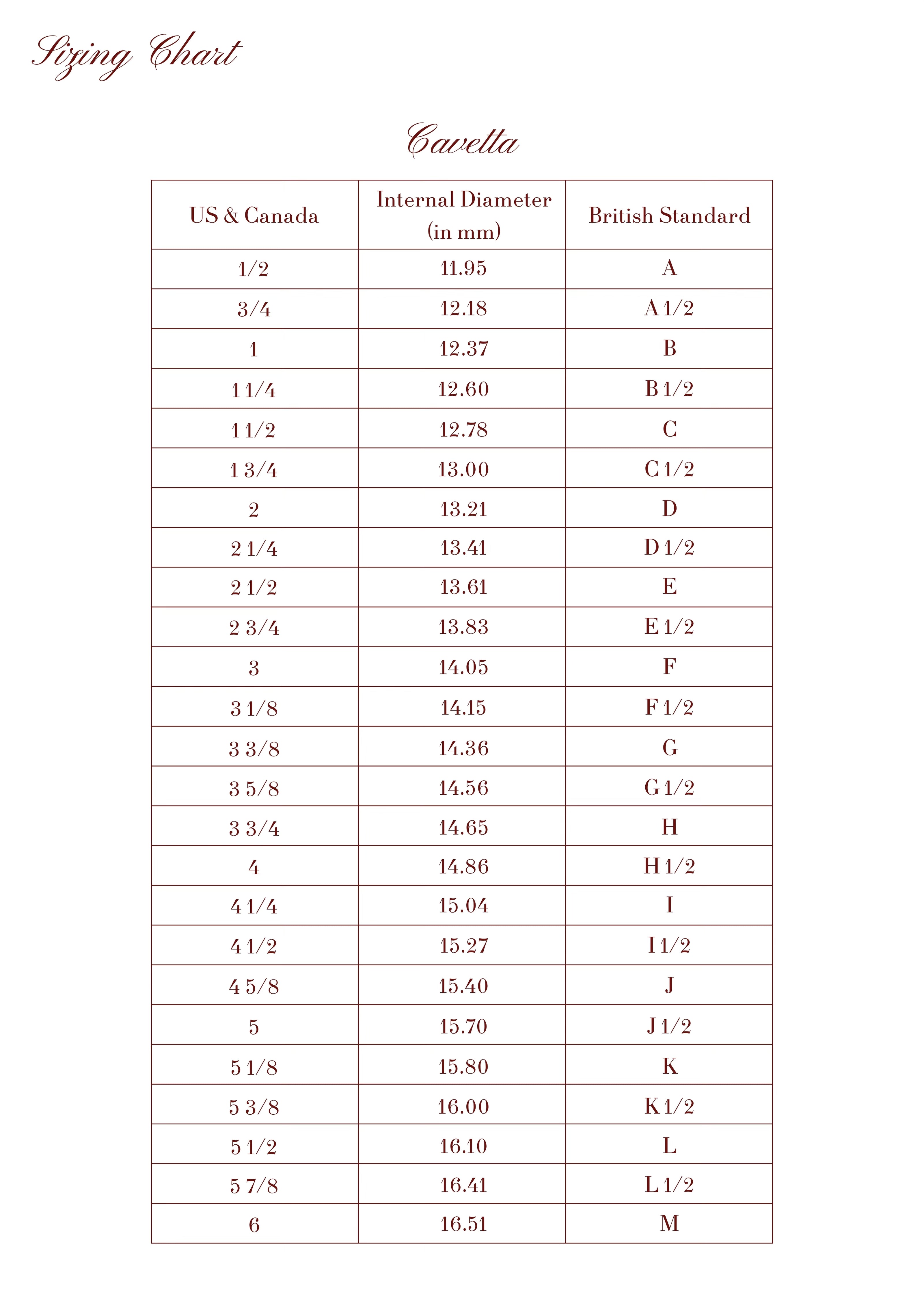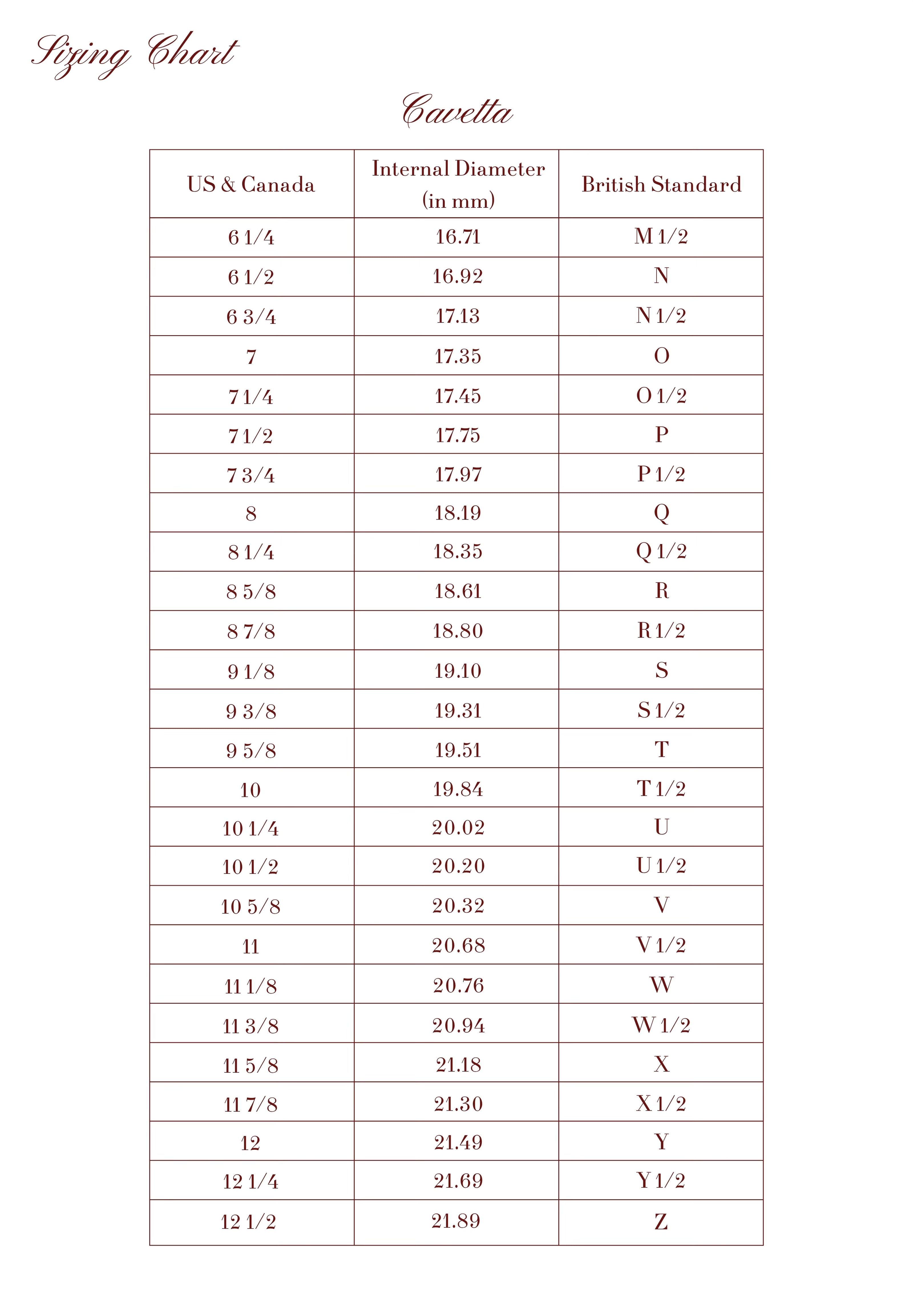 Please follow instructions on the size chart on this page or go to "Ring Sizing" in the main menu for more info on how to measure and use your ring sizer at home.