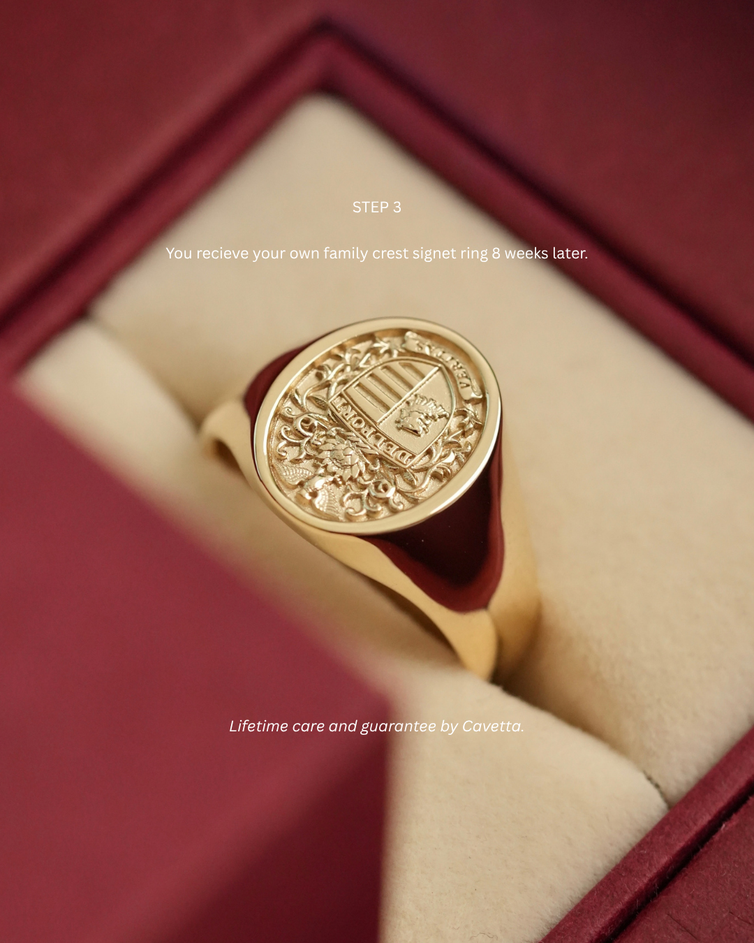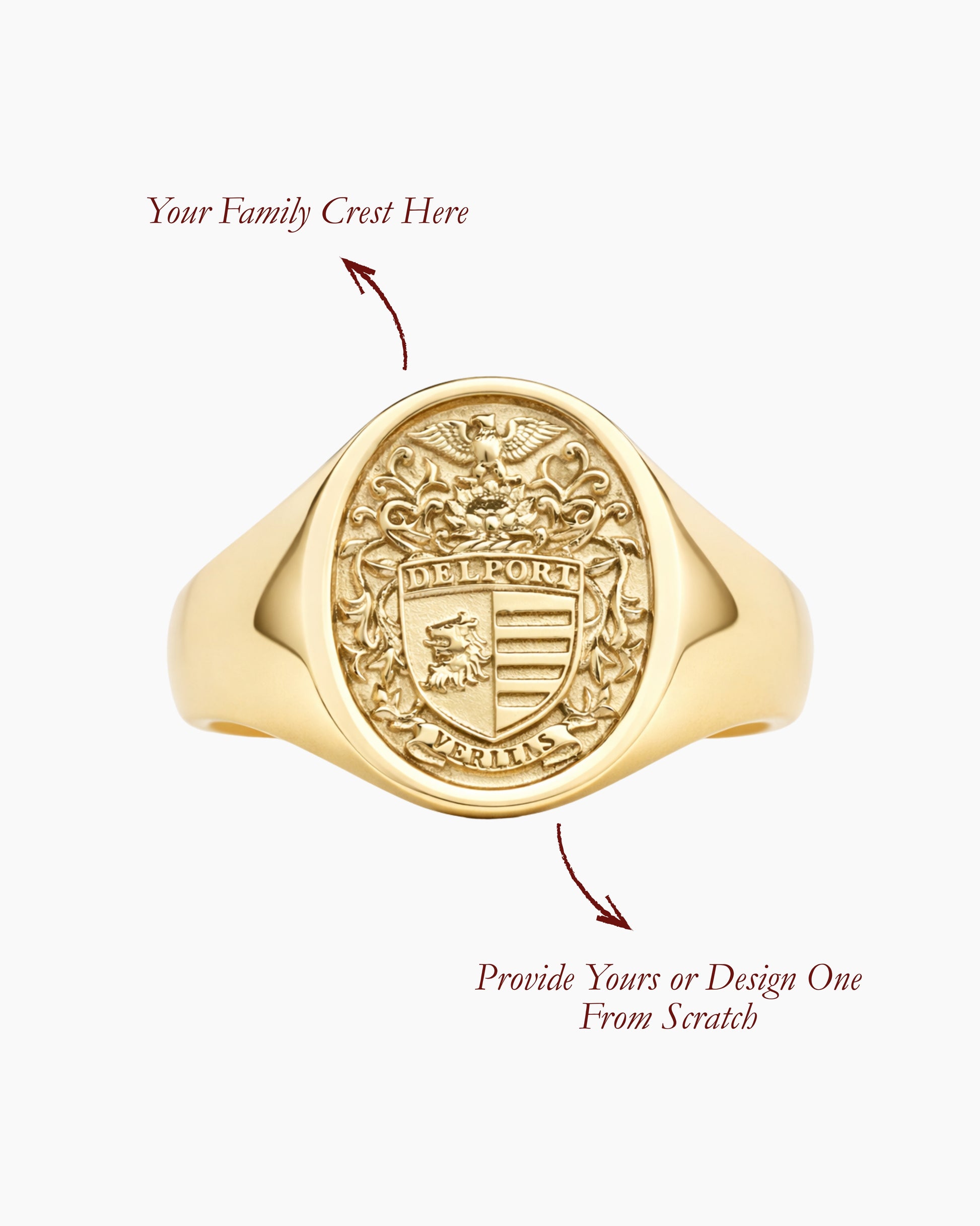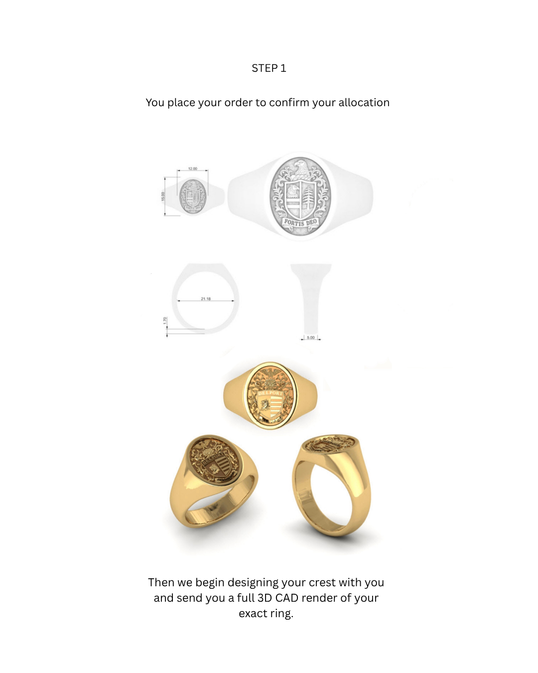 For family crest commissions - Whether you know your crest or not, once you place your order, our team will personally be in touch to begin designing your crest and 3D CAD for your ring.