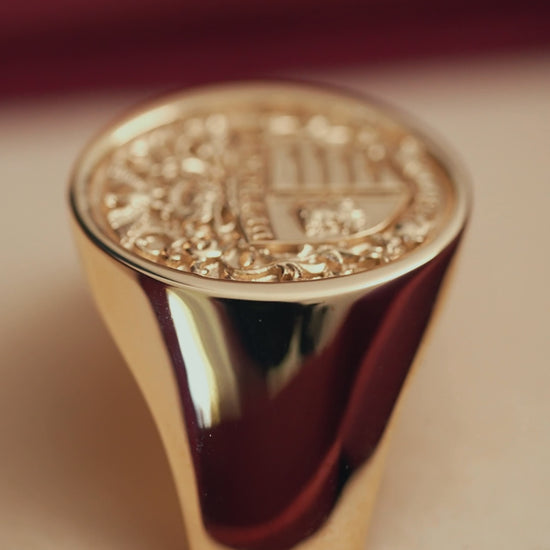 The images shown are examples of crests we've previously created. Your ring will feature a completely custom design - developed with you from initial consultation through to final approval. Whether you're working from an existing family crest or building one from scratch, the process is collaborative. You decide what goes on the face. We make it work in metal.