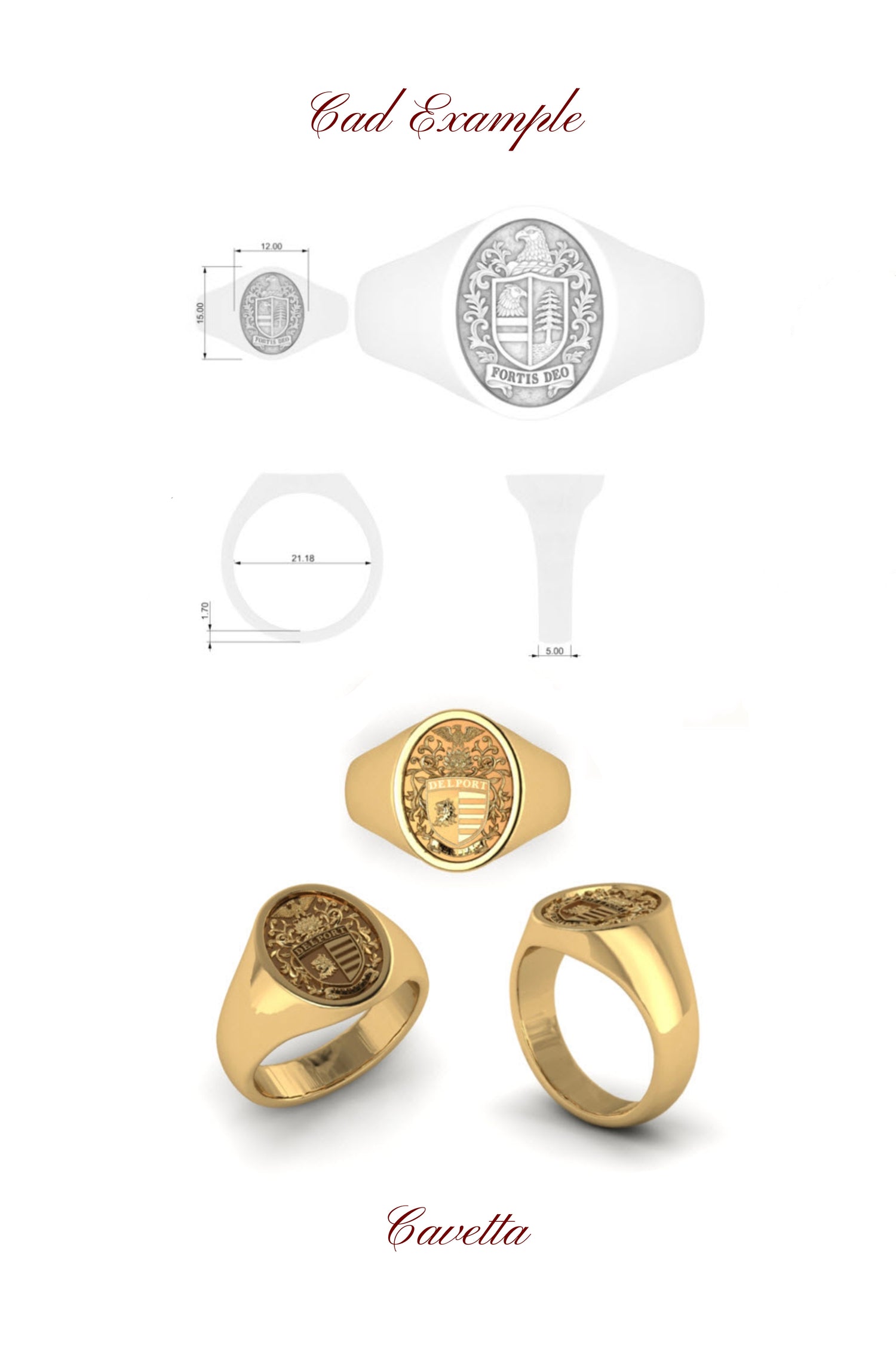 For family crest commissions - Whether you know your crest or not, once you place your order, our team will personally be in touch to begin designing your crest and 3D CAD for your ring.